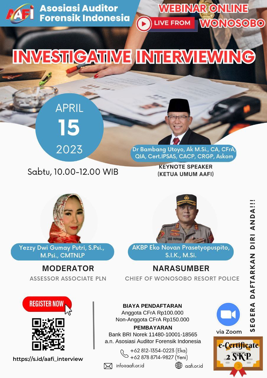 Asosiasi Forensik Auditor Indonesia (AAFI WENOME) mengundang Bapak/Ibu dalam Webinar Online dengan Tema INVESTIGATIVE INTERVIEWING