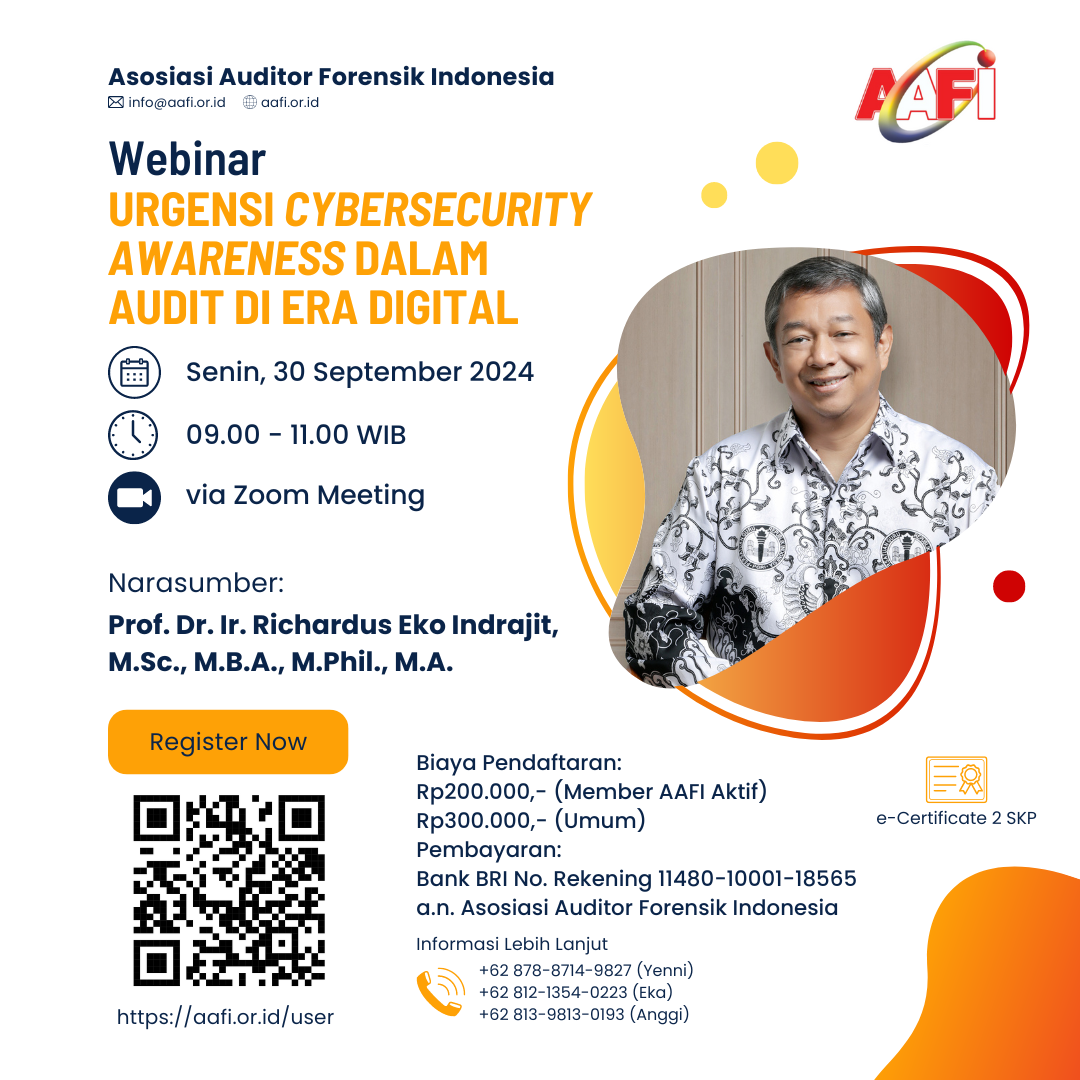 Asosiasi Auditor Forensik Indonesia Wenome (AAFI WENOME) mengundang Bapak/Ibu dalam Webinar Online dengan Tema: Urgensi Cybersecurity Awareness dalam Audit di Era Digital